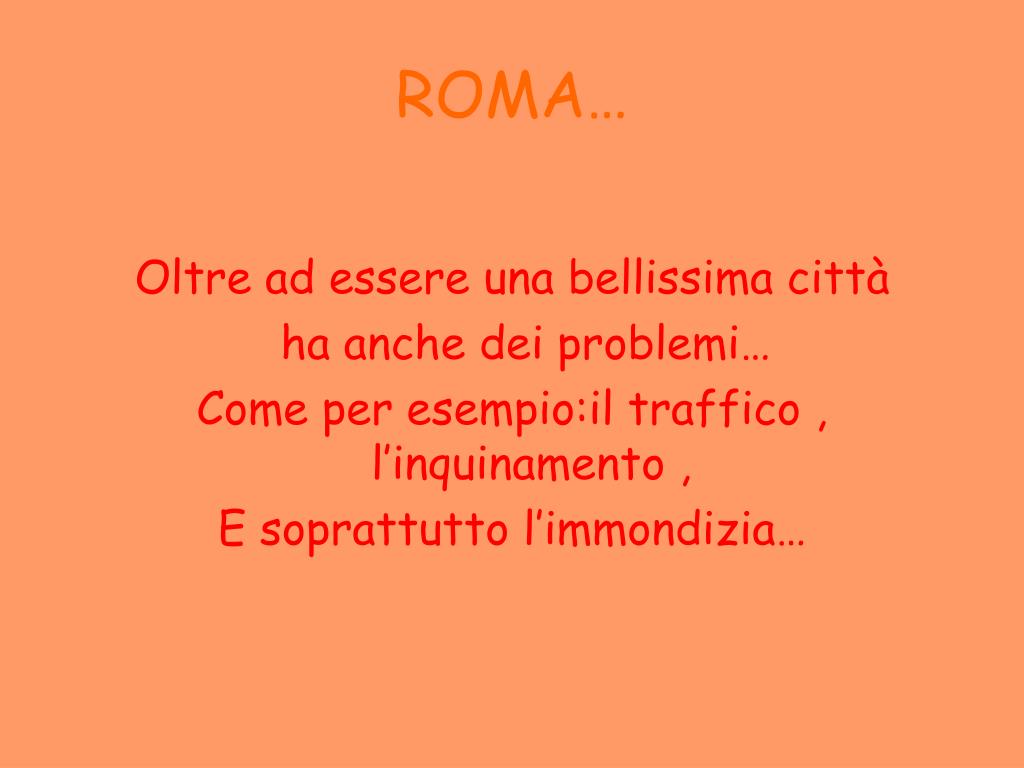 ROMA… Oltre ad essere una bellissima città ha anche dei problemi… Come per esempio:il traffico , l’inquinamento , E soprattutto l’immondizia…
