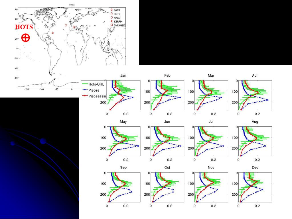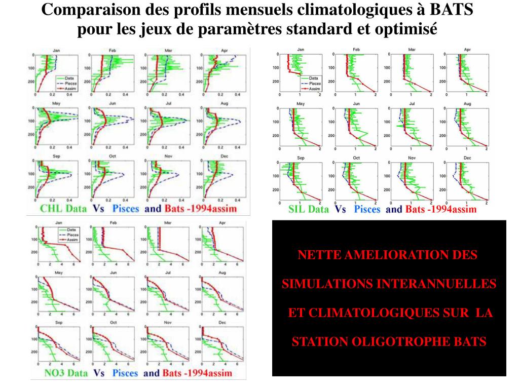HOTS (station oligotrophe) Data Vs Pisces and in PISCES-assim(BATS) BONNE GENERALISATION DE LA PARAMETRISATION A LA STATION HOTS