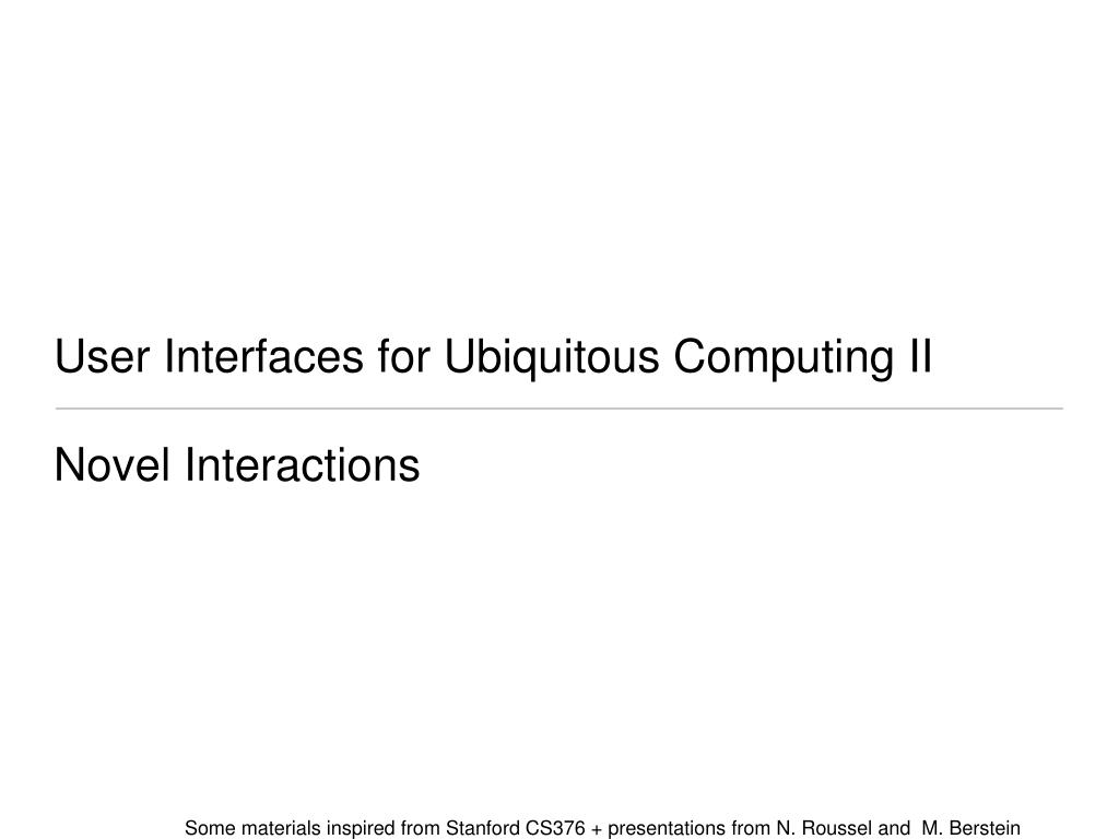User Interfaces for Ubiquitous Computing II • Novel Interactions Some materials inspired from Stanford CS376 + presentations from N. Roussel and M. Berstein