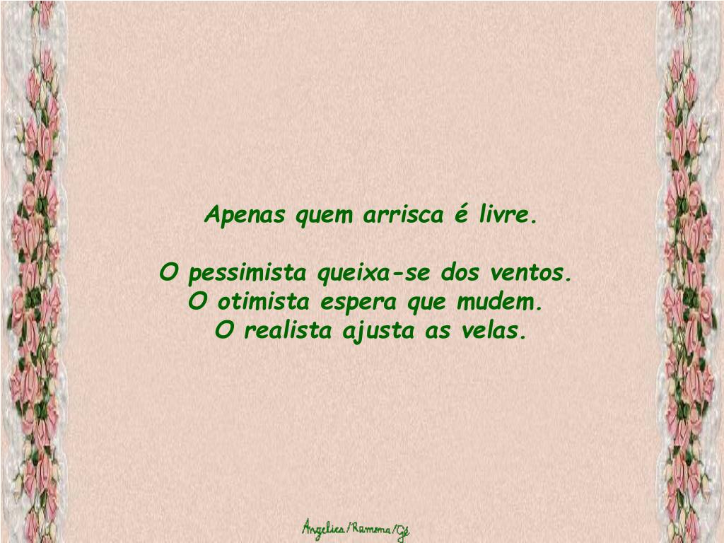 Apenas quem arrisca é livre.O pessimista queixa-se dos ventos. O otimista espera que mudem. O realista ajusta as velas.