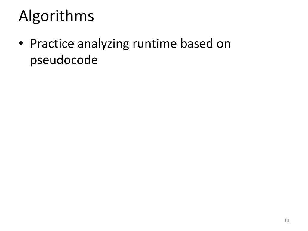 Algorithms • Practice analyzing runtime based on pseudocode