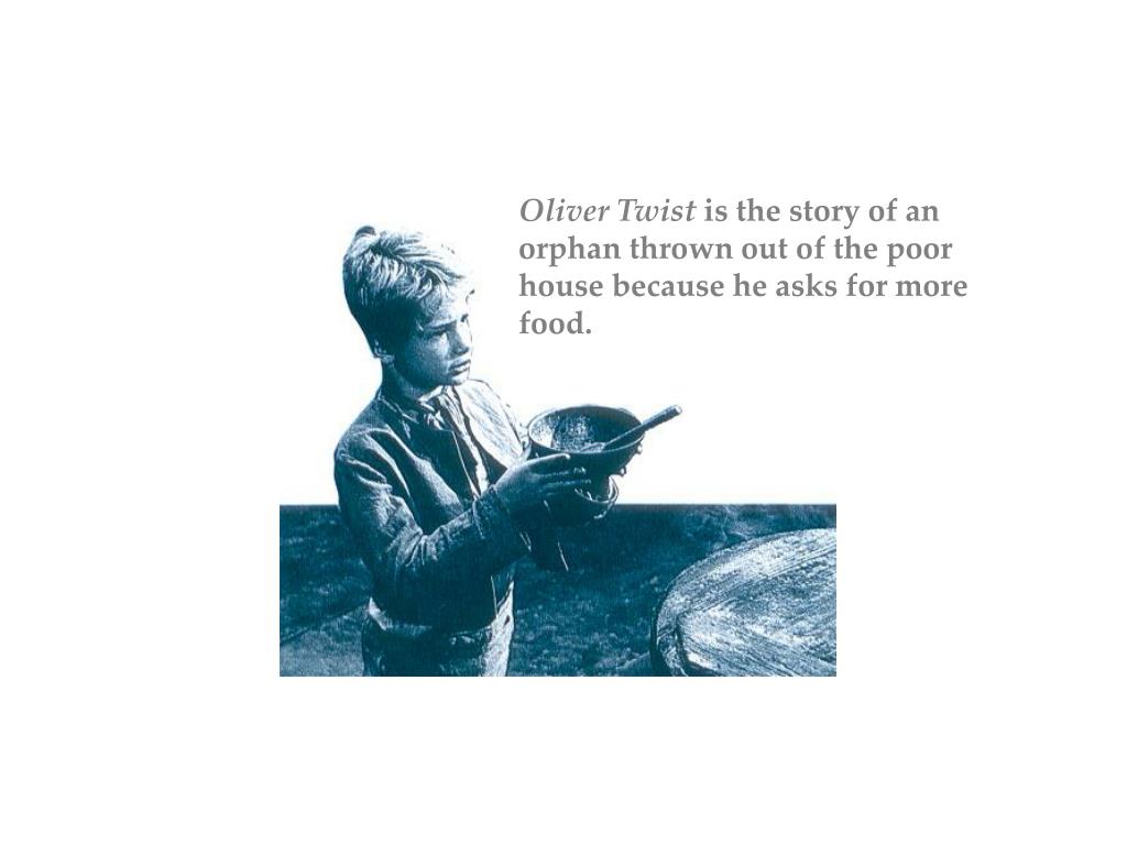 Oliver Twist is the story of an orphan thrown out of the poor house because he asks for more food.