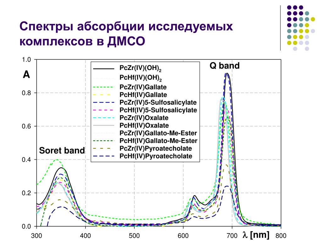 Спектры абсорбции исследуемых комплексов в ДМСО