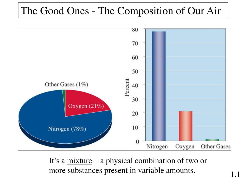 The Good Ones - The Composition of Our Air It’s a mixture – a physical combination of two or more substances present in variable amounts. 1.1