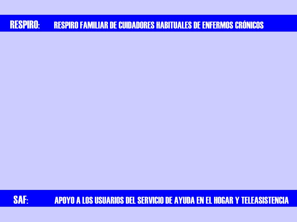 RESPIRO: RESPIRO FAMILIAR DE CUIDADORES HABITUALES DE ENFERMOS CRÓNICOS SAF: APOYO A LOS USUARIOS DEL SERVICIO DE AYUDA EN EL HOGAR Y TELEASISTENCIA
