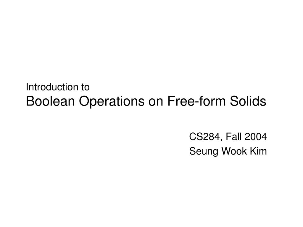 Introduction toBoolean Operations on Free-form Solids CS284, Fall 2004 Seung Wook Kim