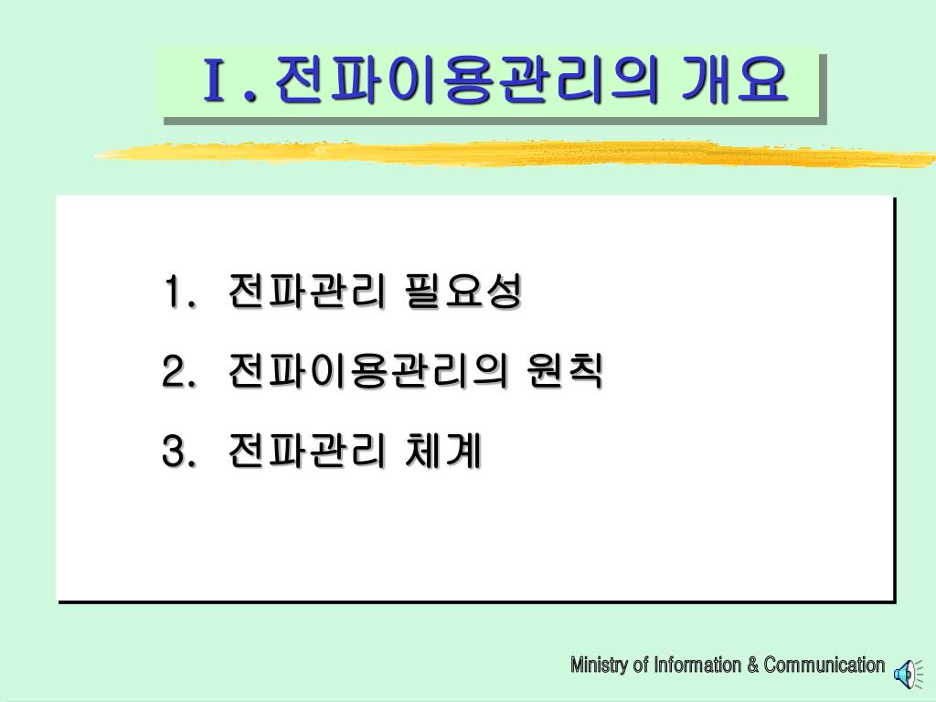 Ⅰ. 전파이용관리의 개요 1. 전파관리 필요성 2. 전파이용관리의 원칙 3. 전파관리 체계