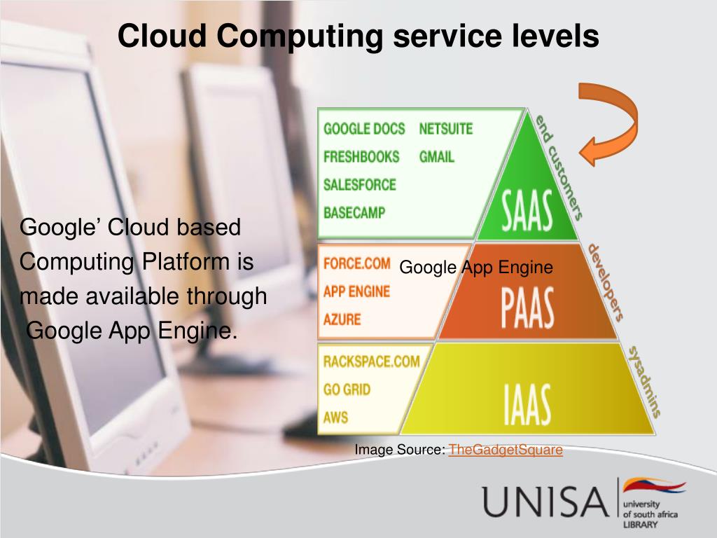Cloud Computing service levels Google’ Cloud based Computing Platform is made available through Google App Engine. Google App Engine Image Source: TheGadgetSquare