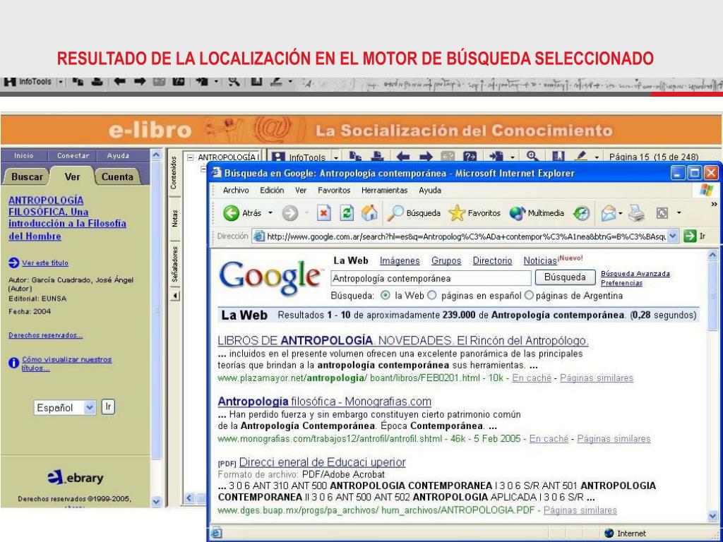 RESULTADO DE LA LOCALIZACIÓN EN EL MOTOR DE BÚSQUEDA SELECCIONADO
