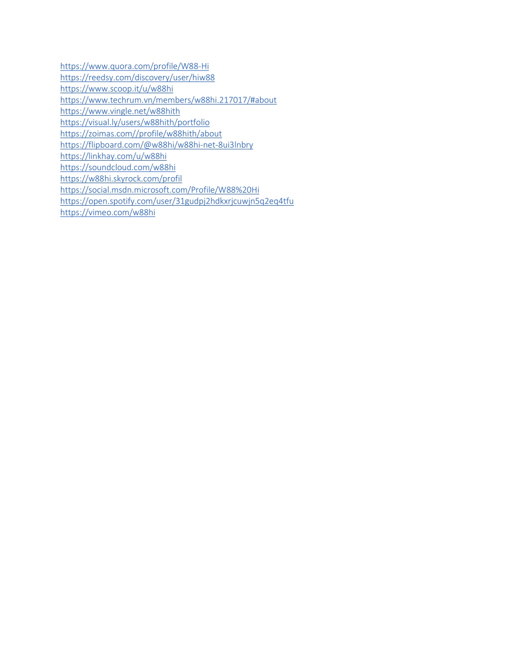 https://www.quora.com/profile/W88-Hi https://reedsy.com/discovery/user/hiw88 https://www.scoop.it/u/w88hi https://www.techrum.vn/members/w88hi.217017/#about https://www.vingle.net/w88hith https://visual.ly/users/w88hith/portfolio https://zoimas.com//profile/w88hith/about https://flipboard.com/@w88hi/w88hi-net-8ui3lnbry https://linkhay.com/u/w88hi https://soundcloud.com/w88hi https://w88hi.skyrock.com/profil https://social.msdn.microsoft.com/Profile/W88%20Hi https://open.spotify.com/user/31gudpj2hdkxrjcuwjn5q2eq4tfu https://vimeo.com/w88hi