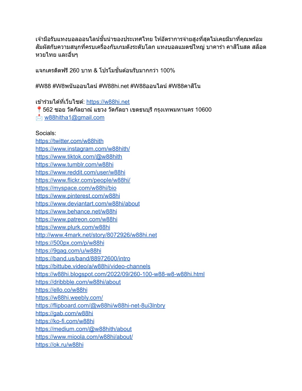 เจ้ามือรับแทงบอลออนไลน์ชั?นนําของประเทศไทยให้อัตราการจ่ายสูงที?สุดไม่เคยมีมาที?คุณพร้อมเจ้ามือรับแทงบอลออนไลน์ชั?นนําของประเทศไทยให้อัตราการจ่ายสูงที?สุดไม่เคยมีมาที?คุณพร้อม สัมผัสกับความสนุกที?ครบเครื?องกับเกมดังระดับโลกแทงบอลแมตซ์ใหญ่บาคาร่าคาสิโนสดสล็อต หวยไทยและอื?นๆ แจกเครดิตฟรี 260 บาท & โปรโมชั?นต้อนรับมากกว่า 100% #W88 #W8พนันออนไลน์ #W88hi.net #W88ออนไลน์ #W88คาสิโน เข้าร่วมได้ที?เว็บไซต์: https://w88hi.net ?562 ซอยวัดกัลยาณ์แขวงวัดกัลยาเขตธนบุรีกรุงเทพมหานคร 10600 ? w88hitha1@gmail.com Socials: https://twitter.com/w88hith https://www.instagram.com/w88hith/ https://www.tiktok.com/@w88hith https://www.tumblr.com/w88hi https://www.reddit.com/user/w88hi https://www.flickr.com/people/w88hi/ https://myspace.com/w88hi/bio https://www.pinterest.com/w88hi https://www.deviantart.com/w88hi/about https://www.behance.net/w88hi https://www.patreon.com/w88hi https://www.plurk.com/w88hi http://www.4mark.net/story/8072926/w88hi.net https://500px.com/p/w88hi https://9gag.com/u/w88hi https://band.us/band/88972600/intro https://bittube.video/a/w88hi/video-channels https://w88hi.blogspot.com/2022/09/260-100-w88-w8-w88hi.html https://dribbble.com/w88hi/about https://ello.co/w88hi https://w88hi.weebly.com/ https://flipboard.com/@w88hi/w88hi-net-8ui3lnbry https://gab.com/w88hi https://ko-fi.com/w88hi https://medium.com/@w88hith/about https://www.mioola.com/w88hi/about/ https://ok.ru/w88hi
