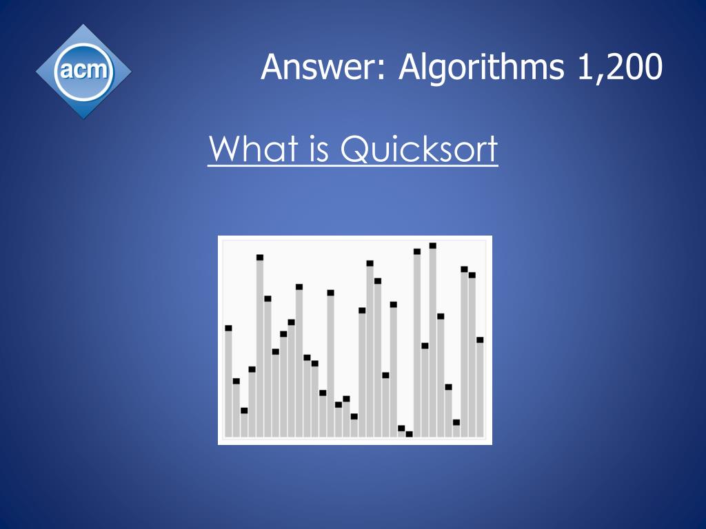 Algorithms 1,200 This sorting algorithm does the following: Divide list into two, with all items on the first list coming before all items on the second list. Then sort the two lists.