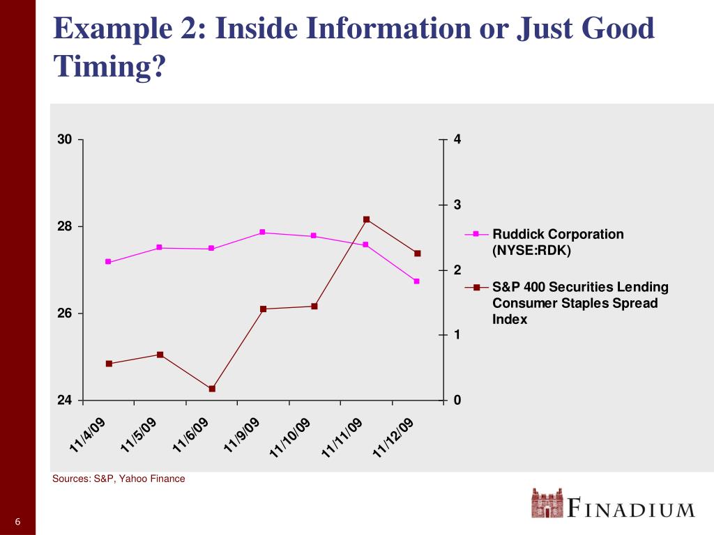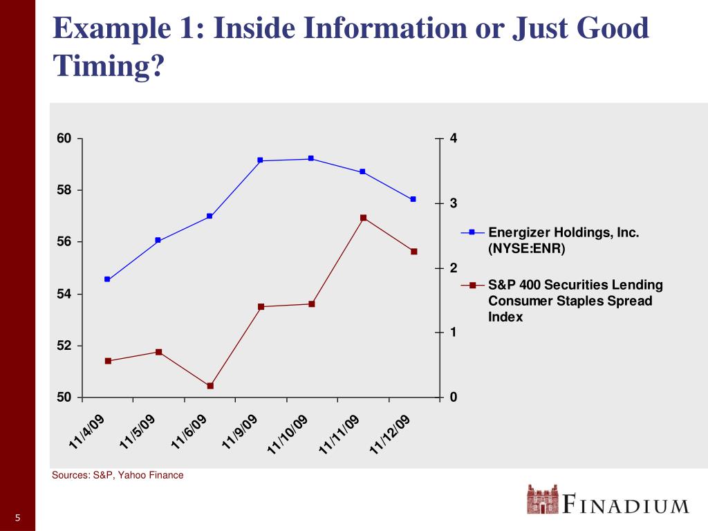 Example 1: Inside Information or Just Good Timing? Sources: S&P, Yahoo Finance
