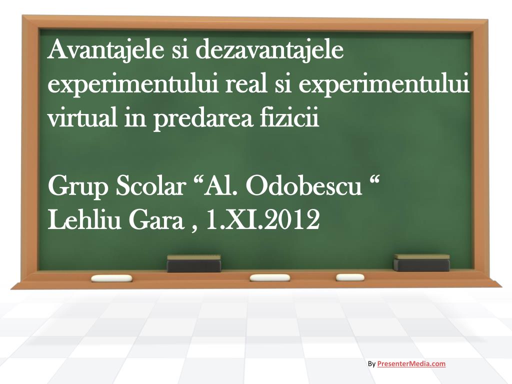 Avantajelesidezavantajeleexperimentului real siexperimentului virtual in predareafiziciiGrupScolar “Al. Odobescu “LehliuGara , 1.XI.2012 By PresenterMedia.com