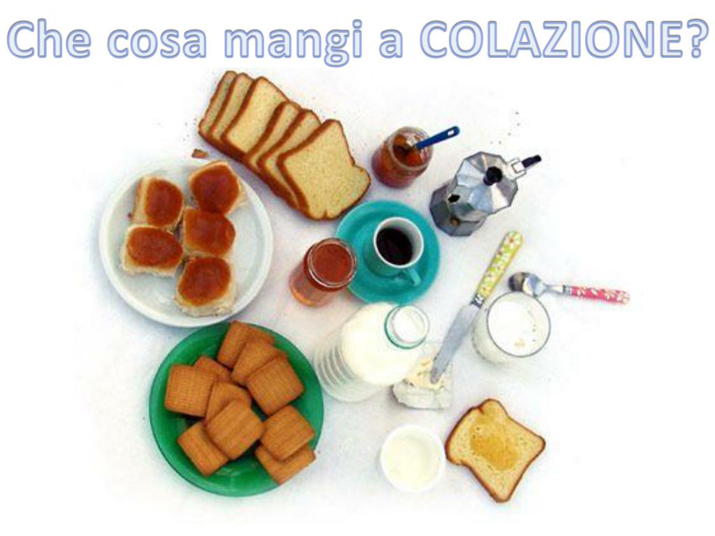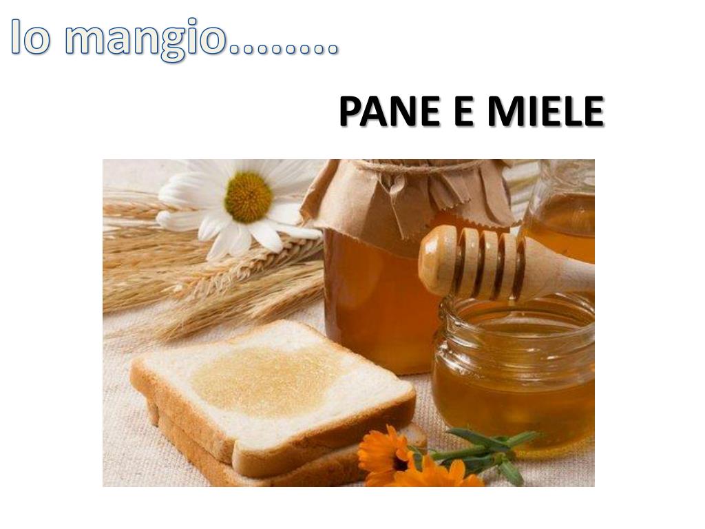 Che cosa mangi a COLAZIONE?. Io mangio. I BISCOTTI. Io mangio. PANE E MARMELLATA. Io mangio. PANE E MIELE. Io mangio. FORMAGGIO. Io mangio. UOVA. Io BEVO. TE’. Io BEVO. LATTE. Io BEVO. SUCCO DI FRUTTA.