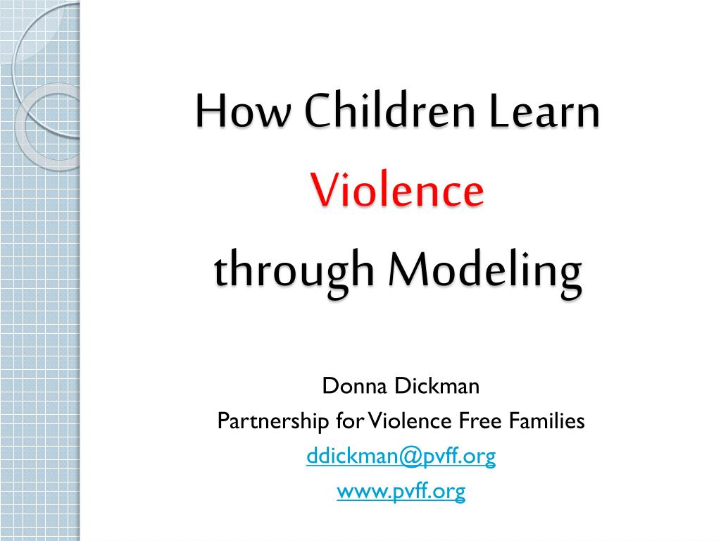 How Children Learn Violence through Modeling Donna Dickman Partnership for Violence Free Families ddickman@pvff.org www.pvff.org