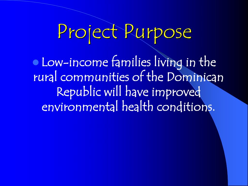 Project Purpose • Low‑income families living in the rural communities of the Dominican Republic will have improved environmental health conditions.