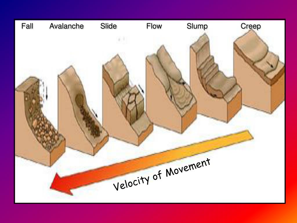 Fall Avalanche Slide Flow Slump Creep Velocity of Movement