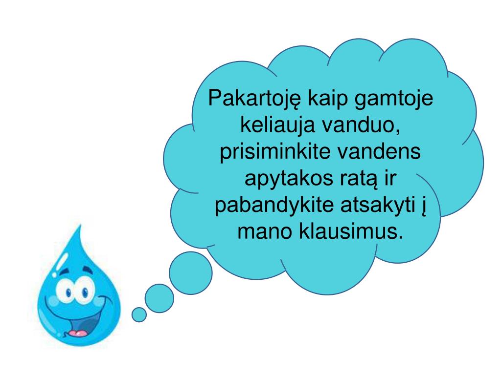Pakartoję kaip gamtoje keliauja vanduo, prisiminkite vandens apytakos ratą ir pabandykite atsakyti į mano klausimus.