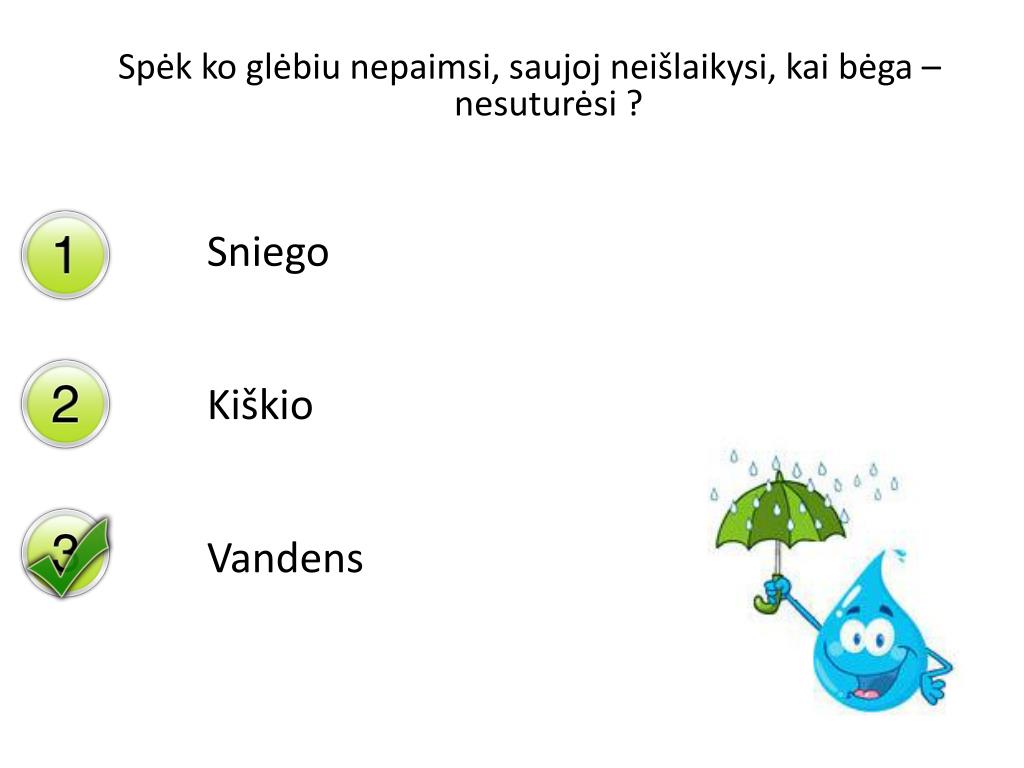 Spėk ko glėbiu nepaimsi, saujoj neišlaikysi, kai bėga – nesuturėsi ? Sniego Kiškio Vandens