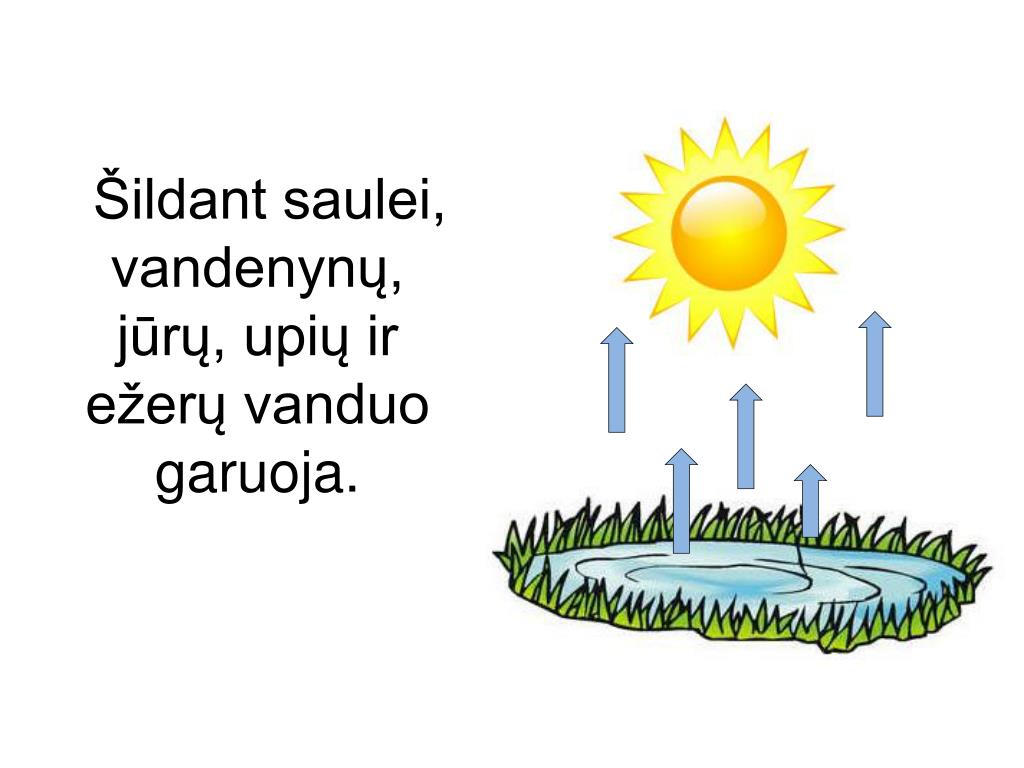 Šildant saulei, vandenynų, jūrų, upių ir ežerų vanduo garuoja.