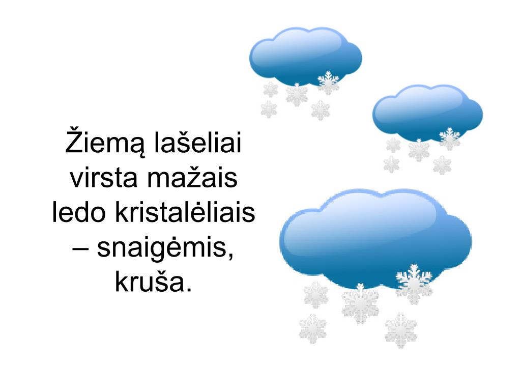 Žiemą lašeliai virsta mažais ledo kristalėliais – snaigėmis, kruša.