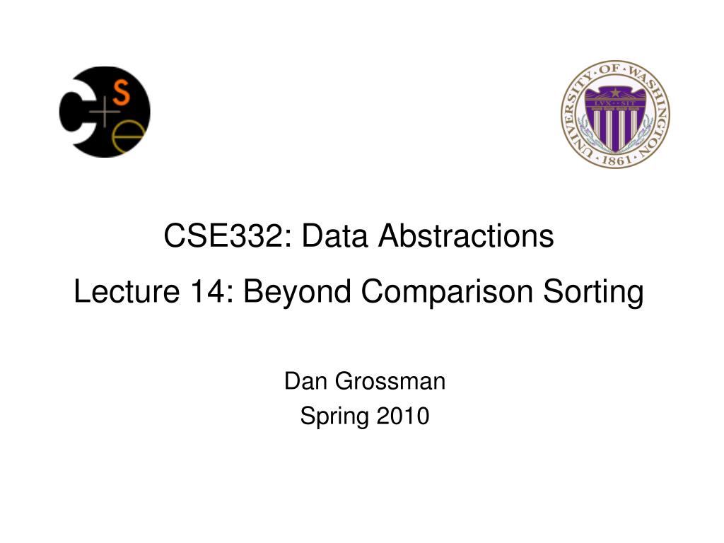 CSE332: Data AbstractionsLecture 14: Beyond Comparison Sorting Dan Grossman Spring 2010