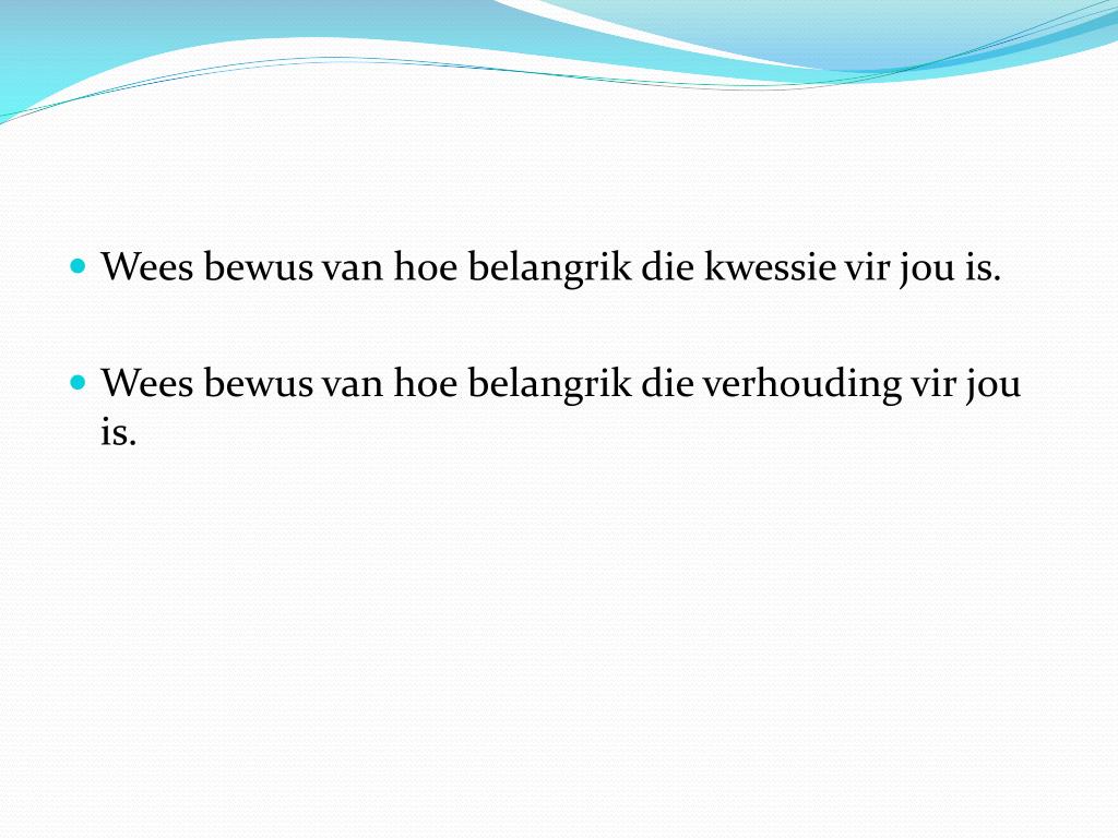 Wees bewus van hoe belangrik die kwessie vir jou is. • Wees bewus van hoe belangrik die verhouding vir jou is.
