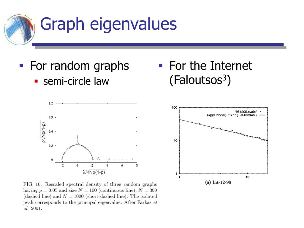 Graph eigenvalues • For random graphs • semi-circle law • For the Internet (Faloutsos3)