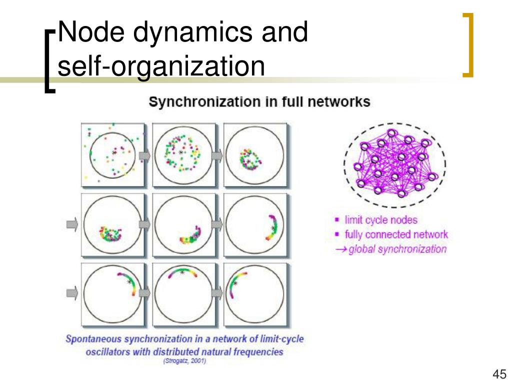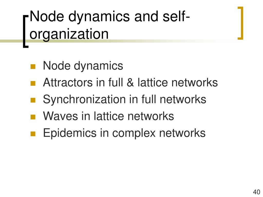 Node dynamics and self-organization • Node dynamics • Attractors in full & lattice networks • Synchronization in full networks • Waves in lattice networks • Epidemics in complex networks 40