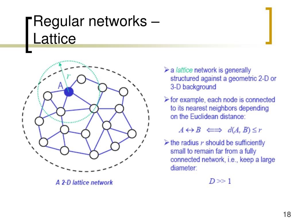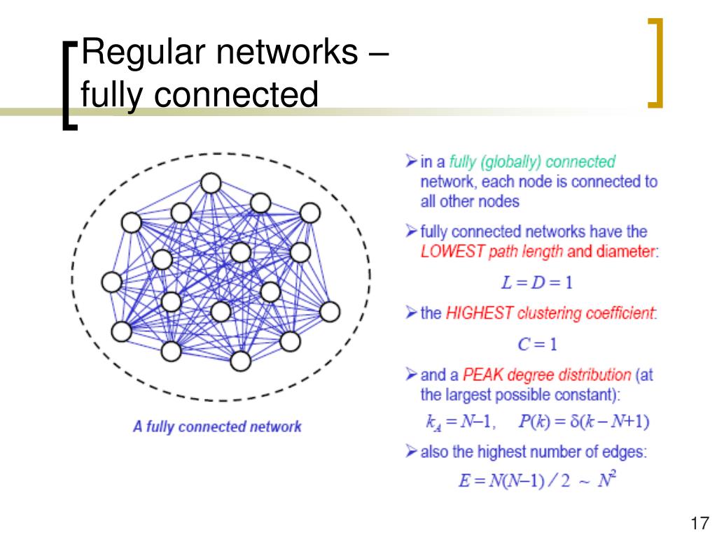 Four structural models • Regular networks • Random networks • Small-world networks • Scale-free networks 16