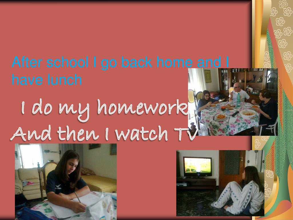 After school I go back home and I have lunch I do myhomework And then I watch Tv