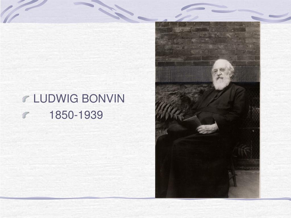 Ludwig Bonvin S.J. 1850-1939. LUDWIG BONVIN. Medicine & Law (Early years) Priest Composer Educator Writer. February 17, 1850 Born in Siders, Switzerland. Switzerland. 1862-1870 College in Sion, Switzerland 1870-1872 Medicine Vienna University, Austria