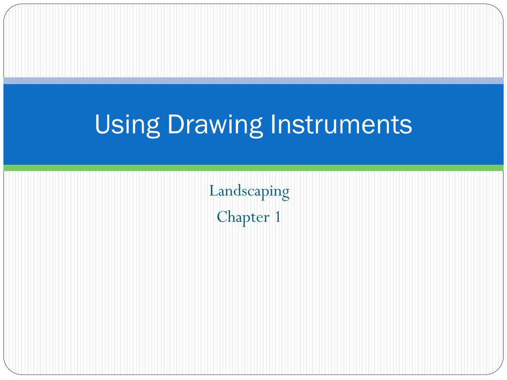 Using Drawing Instruments. Landscaping Chapter 1. Terms to Know. T-Square Drawing board/table Drawing pencil Drawing leads Letter Guides Ames Lettering Guide Triangles Curves. Scale Engineers Scale Architect’s Scale. The Purpose of Drawing Tools. Help make an idea a reality