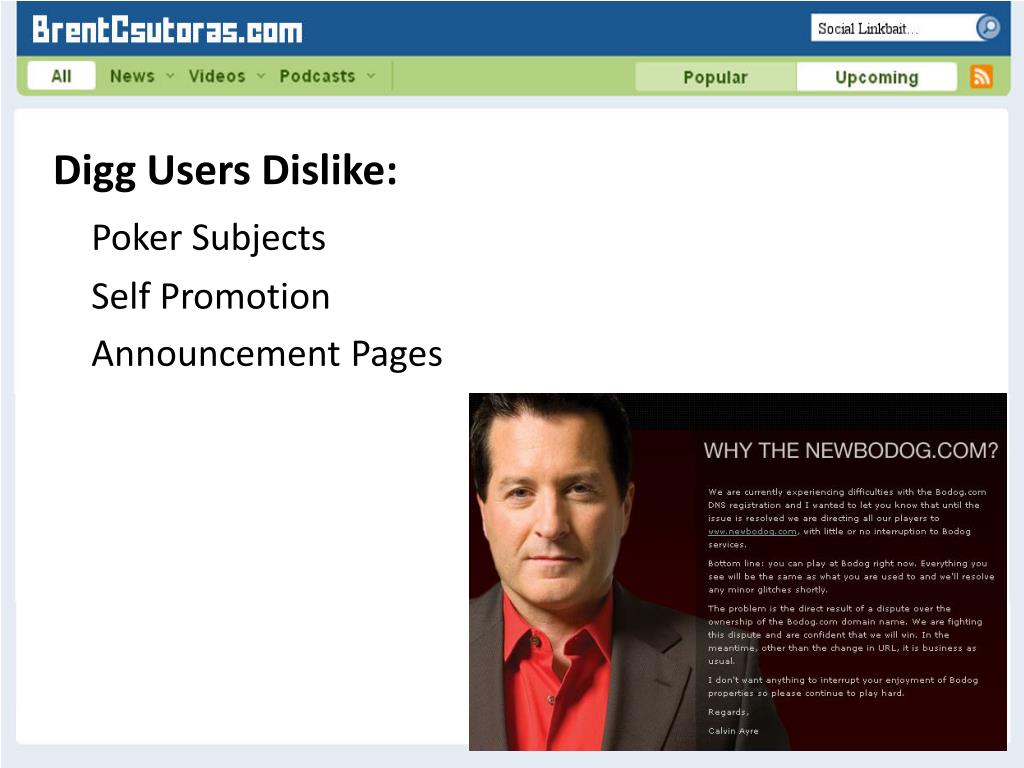 Digg Users Dislike: Poker Subjects Self Promotion Announcement Pages