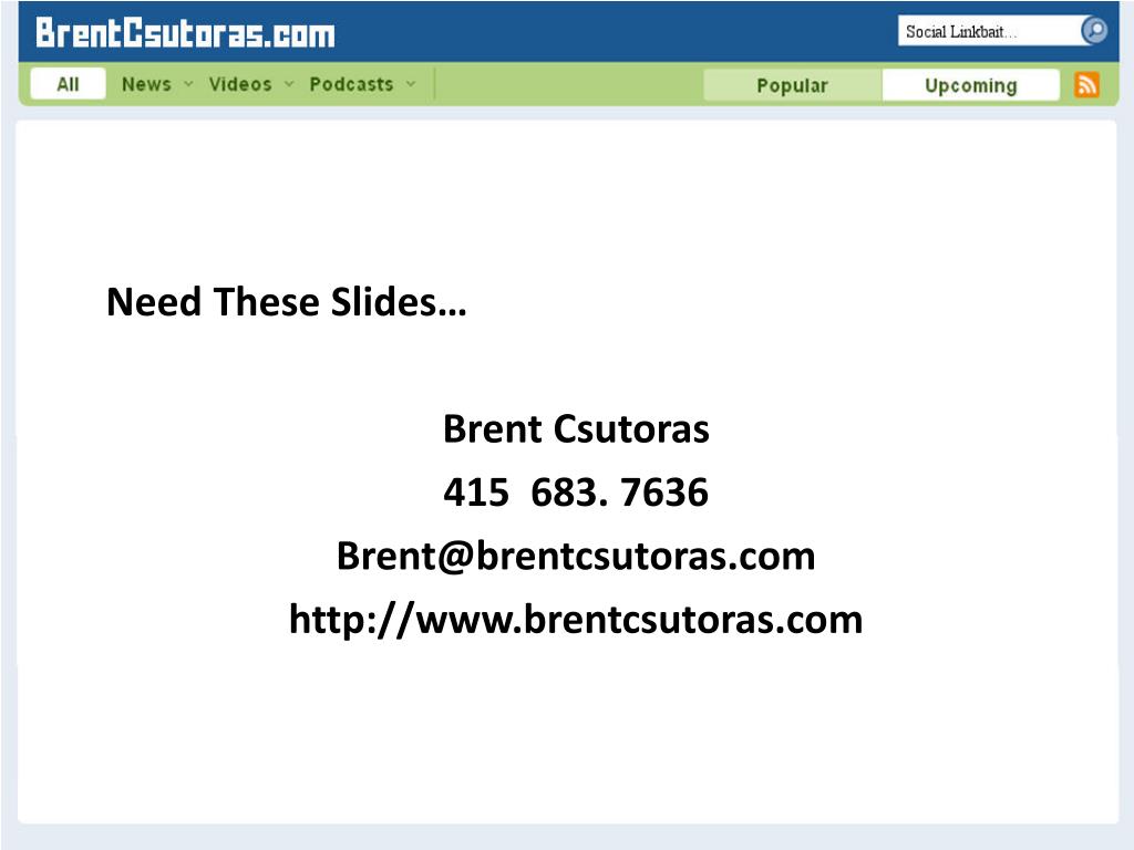 Need These Slides… Brent Csutoras 415 683. 7636 Brent@brentcsutoras.com http://www.brentcsutoras.com