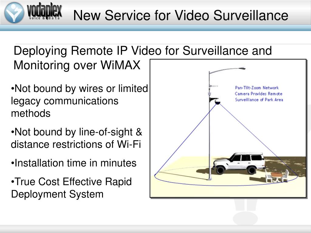 New Service for Video Surveillance Deploying Remote IP Video for Surveillance and Monitoring over WiMAX • Not bound by wires or limited legacy communications methods • Not bound by line-of-sight & distance restrictions of Wi-Fi • Installation time in minutes • True Cost Effective Rapid Deployment System 7