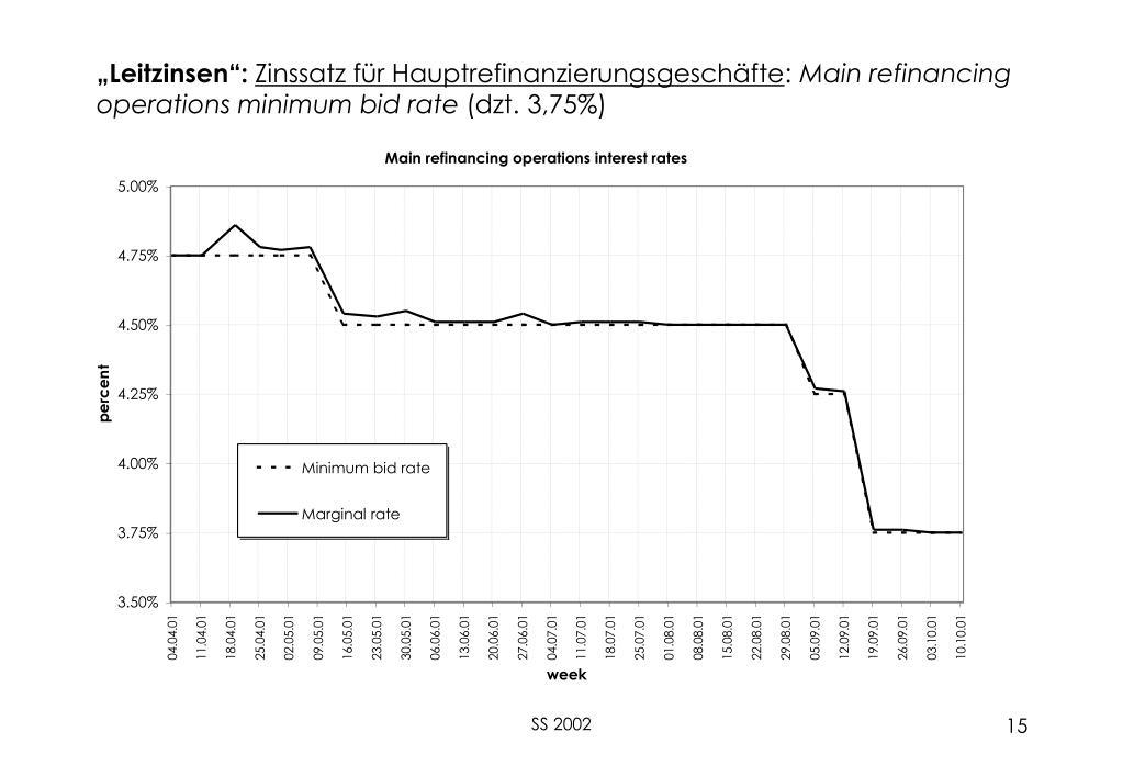 „Leitzinsen“: Zinssatz für Hauptrefinanzierungsgeschäfte: Main refinancing operations minimum bid rate (dzt. 3,75%) SS 2002
