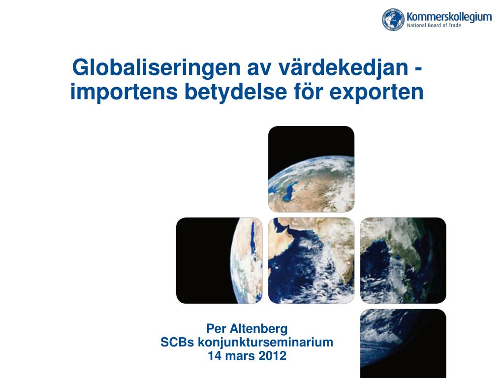 Globaliseringen av värdekedjan - importens betydelse för exportenPer AltenbergSCBs konjunkturseminarium 14 mars 2012