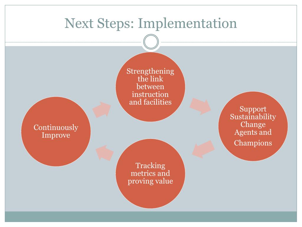Background: Sustainability Planning Adoption of Sustainability Template Creation of Campus level sustainability teams Define Sustainability Goals Refine and Adjust template for Campus fit Create Criteria, Metrics, and action items Establish Baselines and Timelines Engage the campus community