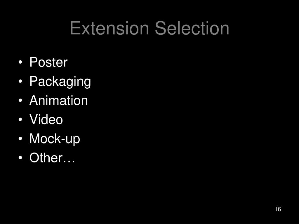 Extension Selection • Poster • Packaging • Animation • Video • Mock-up • Other…