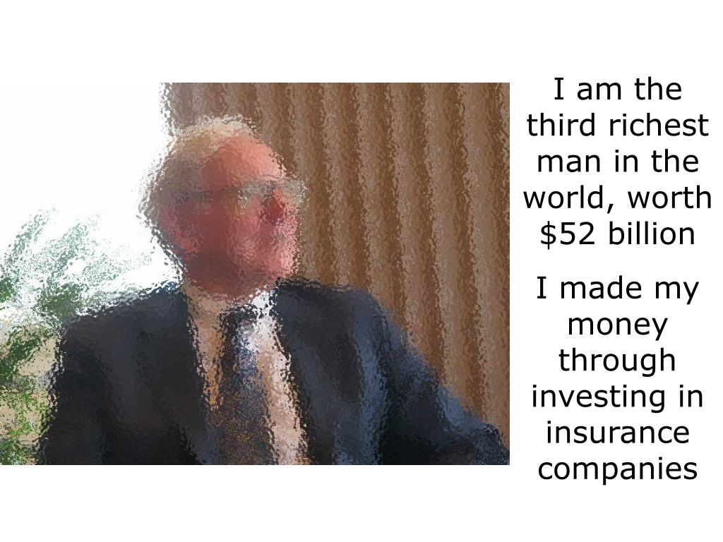 I am the third richest man in the world, worth $52 billion I made my money through investing in insurance companies