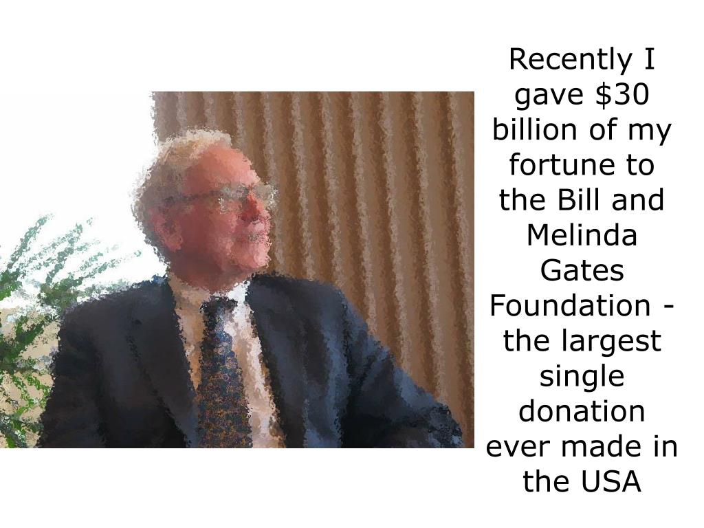 Recently I gave $30 billion of my fortune to the Bill and Melinda Gates Foundation - the largest single donation ever made in the USA