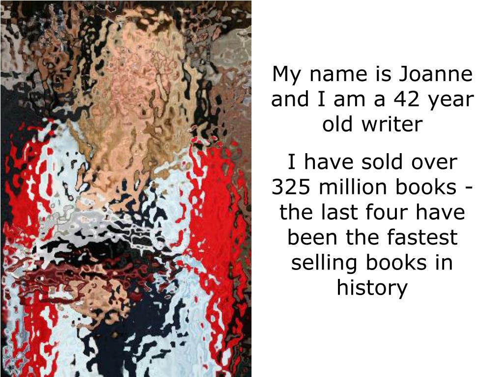 My name is Joanne and I am a 42 year old writer I have sold over 325 million books - the last four have been the fastest selling books in history
