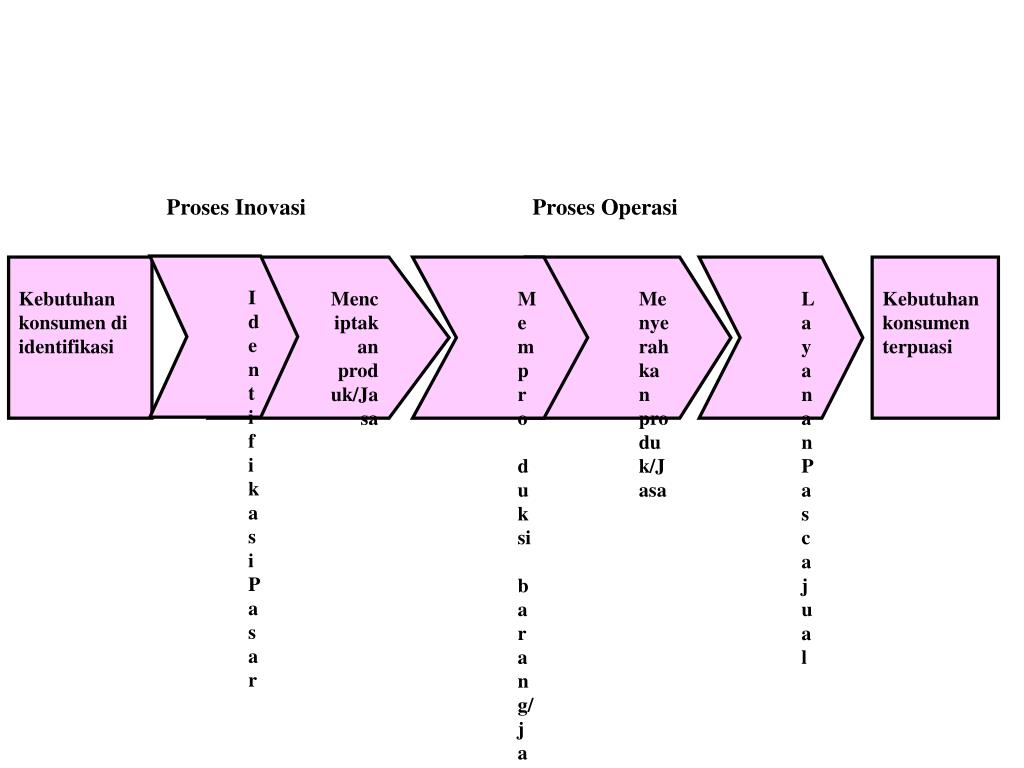 Identi fikasi Pasar Kebutuhan konsumen di identifikasi • Menciptakan produk/Jasa • Mempro • duksi • barang/ jasa • Menyerahkan produk/Jasa • Layanan Pasca jual Kebutuhan konsumen terpuasi Proses Inovasi Proses Operasi