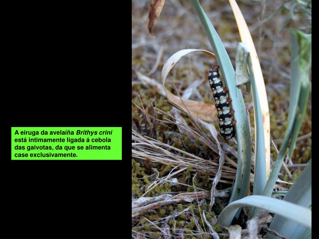 A eiruga da avelaíña Brithys crini está intimamente ligada á cebola das gaivotas, da que se alimenta case exclusivamente.