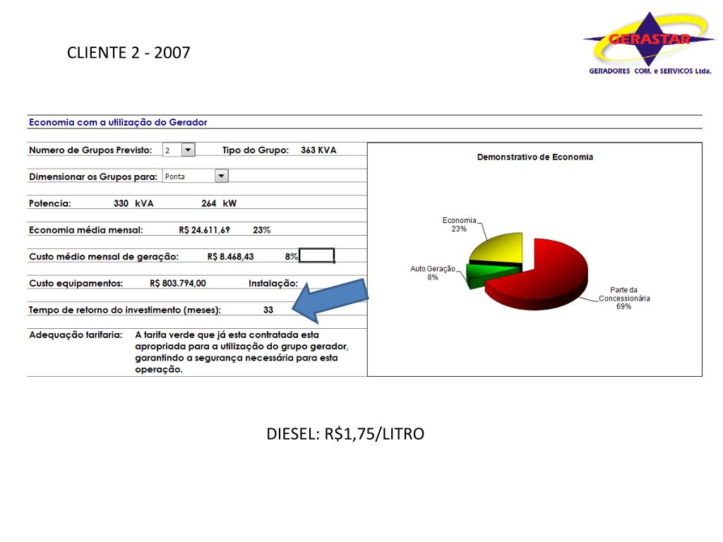 CLIENTE 2 - 2007 DIESEL: R$1,75/LITRO