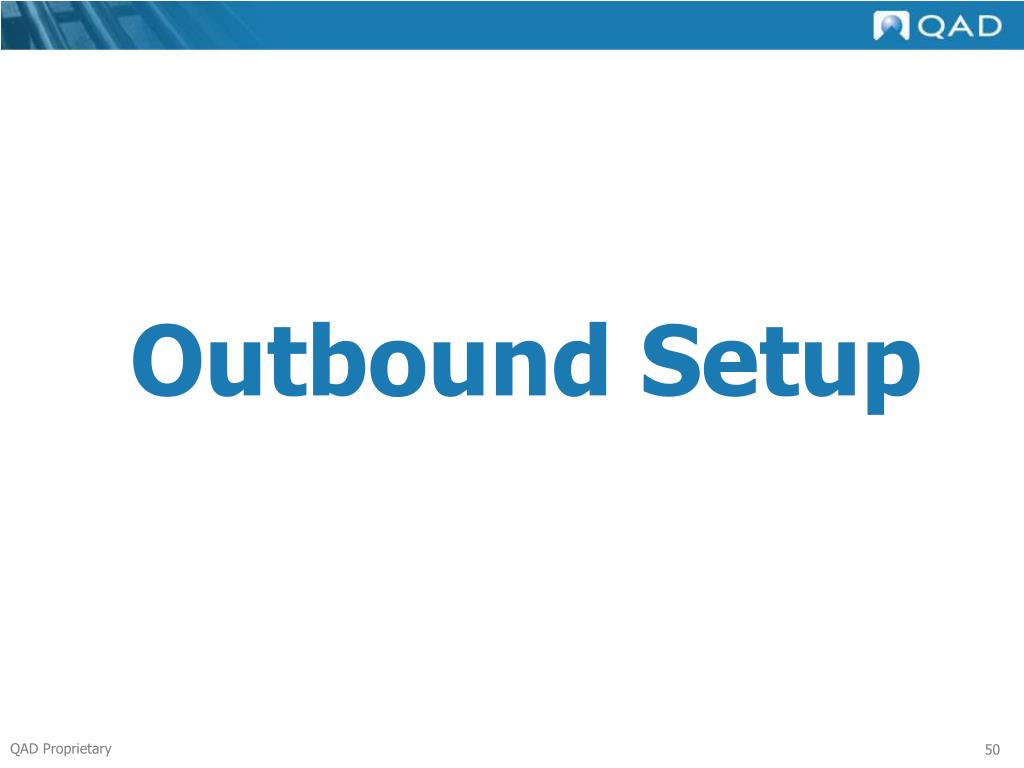 What is Logistics Accounting?? QAD module for tracking costs, such as freight and duty, that are incurred when items are received into, shipped from, or moved between sites Addresses both Inbound and Outbound functionality