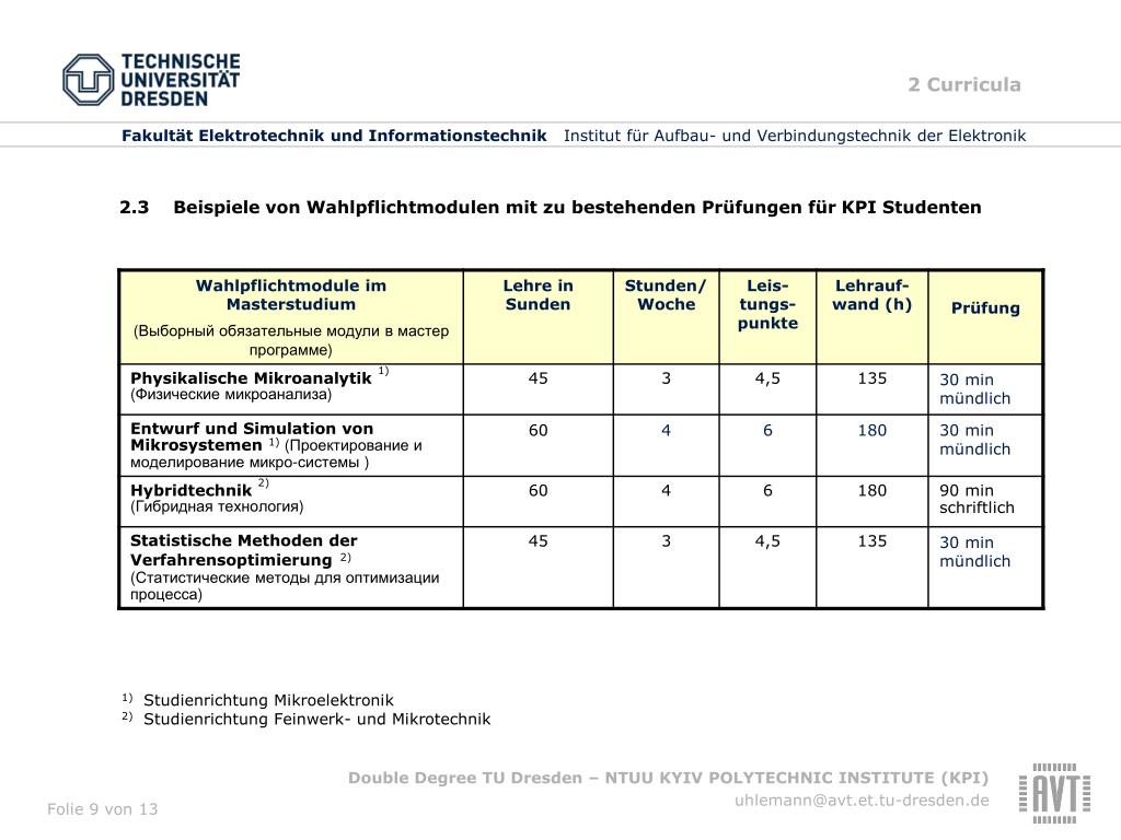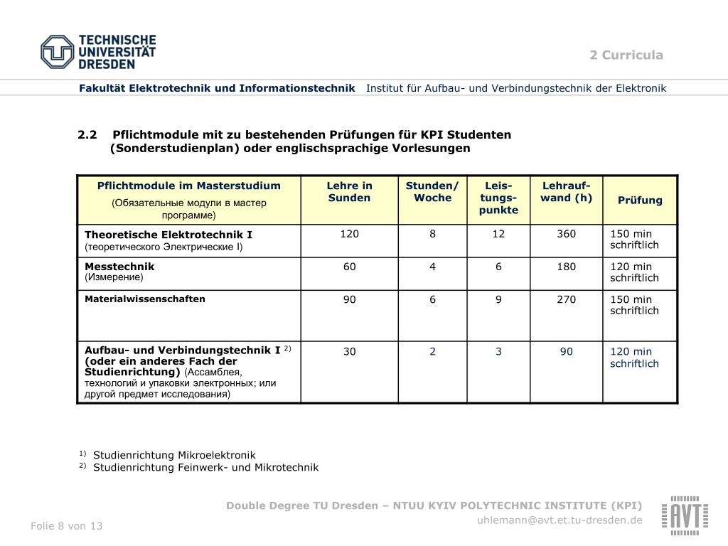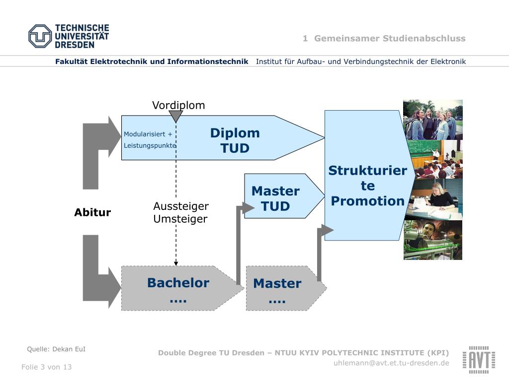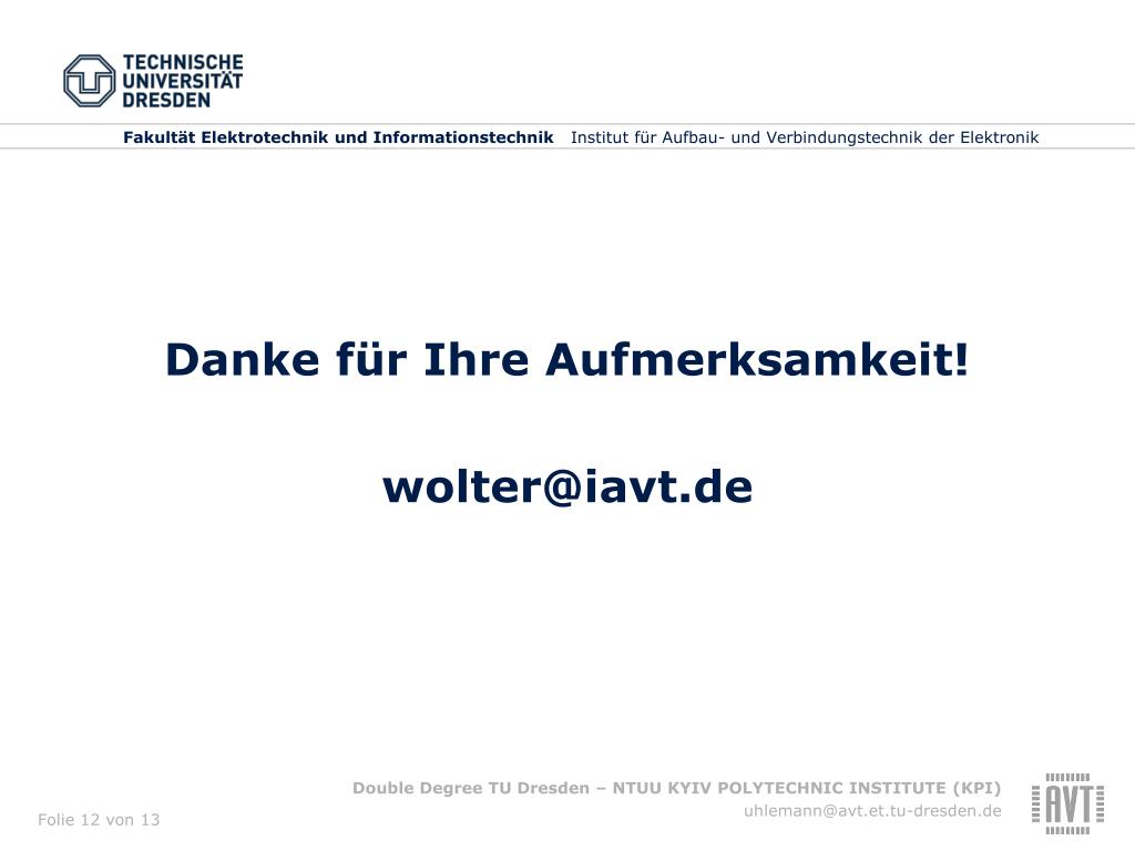 Fakultät Elektrotechnik und Informationstechnik Institut für Aufbau- und Verbindungstechnik der Elektronik Double Degree zwischen der Technischen Universität Dresden, Fakultät Elektrotechnik und Informationstechnik und der National Technical University of Ukraine (NTUU)“KYIV POLYTECHNIC INSTITUTE” (KPI) Prof. Dr. K.-J. Wolter 11. April 2012