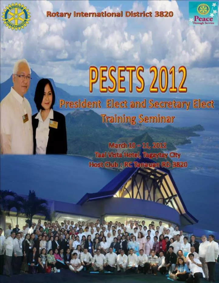 Welcome to the Presidents-elect Training Seminar (PESETS) 2012! Join fellow Rotarians as we prepare for the vital role of club president. A well-informed and enthusiastic president strengthens the club, inspires members, and drives successful initiatives. Embrace challenges, foster camaraderie, and elevate your collective goals. Let's cultivate leadership qualities that motivate and empower our communities through Rotary service. Wishing everyone a productive and transformative Rotary year ahead!
